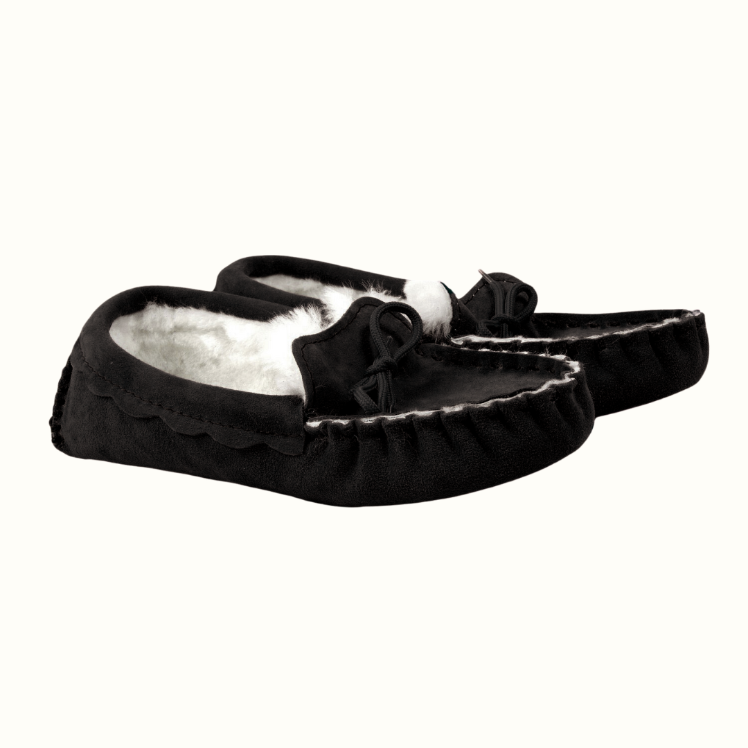 Special Edition: Waveney Moccasin Slippers in Black or Dark Ebony Brown Sheepskin