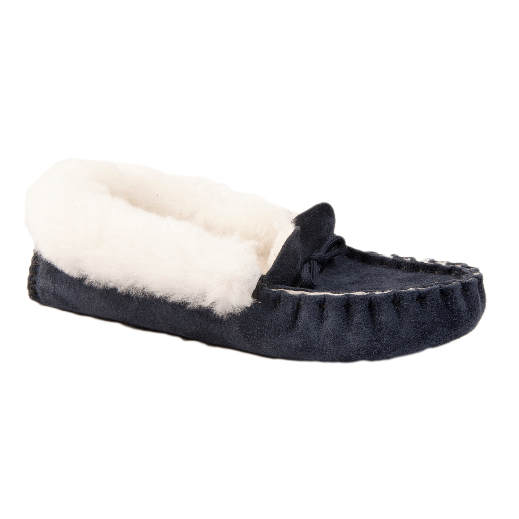 Product image 2Navy Blue Moccasin Sheepskin Slippers with Lambswool Collar